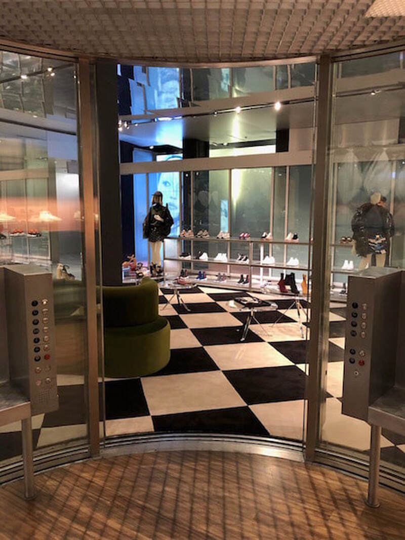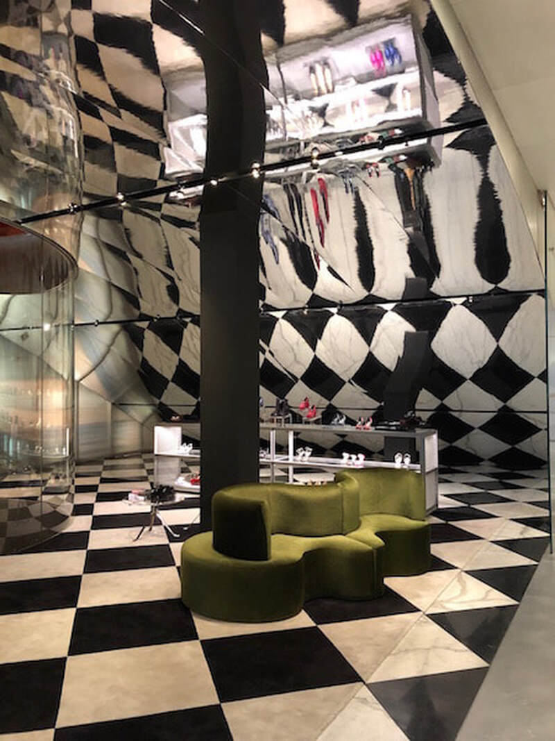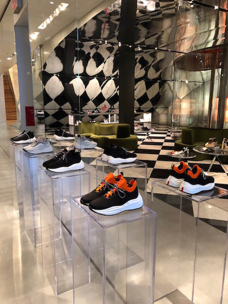 Za powszechną uważa się wiedzę, że projekt wnętrza nie powinien przyćmiewać głównego produktu dla którego potrzeb został stworzony. Tak więc wnętrze sklepu powinno być uzupełnieniem dla towaru, w restauracji najważniejszy powinien być smak jedzenia i jeżeli okaże się, że krzesło, na którym siedzimy spożywając obiad staje się centrum zainteresowania wyprzedzając wyśmienity stek to wierząc stereotypom można założyć, że balans dopełnienia jakim powinno być wnętrze został zachwiany. W tym sensie zaskoczeniem będzie wnętrze Prady, które przemawia językiem głośniejszym do ludzi uwrażliwionych na sztukę, architekturę i design a nie tych, którzy chcieliby tylko przymierzyć buty.
