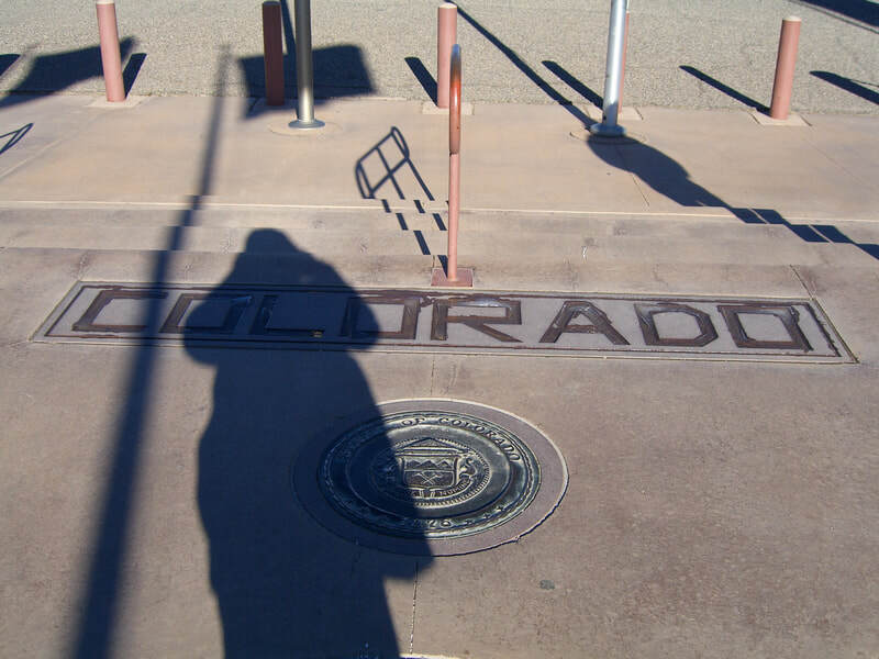 Zanim osiągnęliśmy cel podróży, na drodze pojawił się znak skrętu do Four Corners. Four Corners co należy przetłumaczyć - Cztery Narożniki - jest nietypowym miejscem na mapie Stanów Zjednoczonych, gdzie pod idealnie prostym kątem zbiegają się granice czterech stanów: Nowego Meksyku, Kolorado, Arizony i Utah. Miejsce jest pustkowiem w dali otoczonym górami, którego centrum wyznacza płyta kamienna z krzyżem przecięcia się czterech granic. Znajdował się tam jeden budynek, a bardziej  domeczek o nijakim wyglądzie. W kompletnie surowym wnętrzu pamiątki sprzedawała wiekowa Indianka. Oprócz niej znajdowało się tam biurko i krzesło, a ogień trzaskający w kominku przypominał, że na tym pustkowiu istnieje życie. Pomimo, surowości wnętrza, chciało się tam zostać. Chciało się rozmawiać z tą niezwykłą kobietą, która opowiadała gdzie zbiera piasek o charakterystycznym zabarwieniu, z którego robi swoje obrazki. Na odwrocie tych pamiątek, miedzy innymi napisała, że turkus oznacza piękno i harmonię. Pomyślałam, że posiadamy naturalną potrzebę powielenia piękna i harmonii lub wręcz usiłujemy wymyślać je na nowo. Komplikujemy coś co nie jest skomplikowane i otacza nas w swojej perfekcyjnej formie.